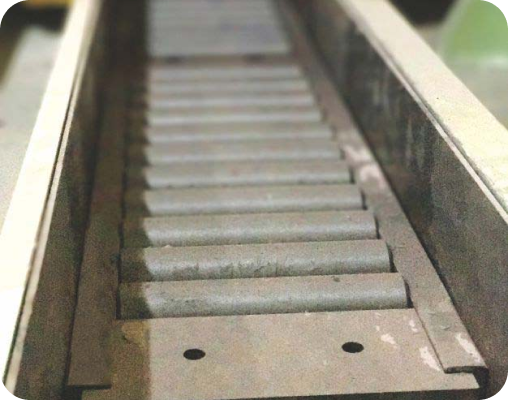In KK LPMs gang rollers are used instead of the tradition linear guides (L.M.). gang rollers requires less Maintenance than the L.M. The lifetime of the bridge Reciprocating motion increases eightfold because of these gang rollers.